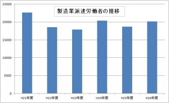 静岡県の派遣労働者数は、40,626人(H26年) そのうち 20,166人が、製造業 9,745人が、政令業務 10,715人が、その他(一般事務、営業、販売等) に、従事しています。 製造業務に派遣された労働者数は、前年比で8.0%増です。